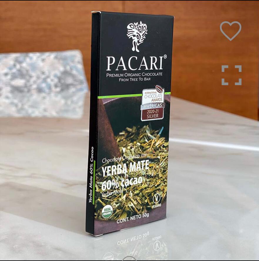 Barra de chocolate 60% cacao con Hierba Mate 50grs • Pacari Chile